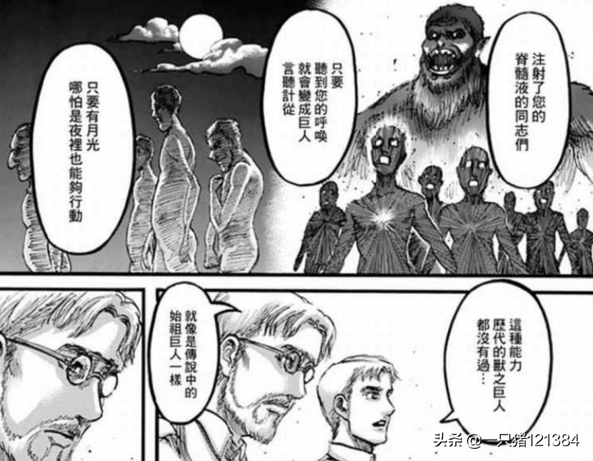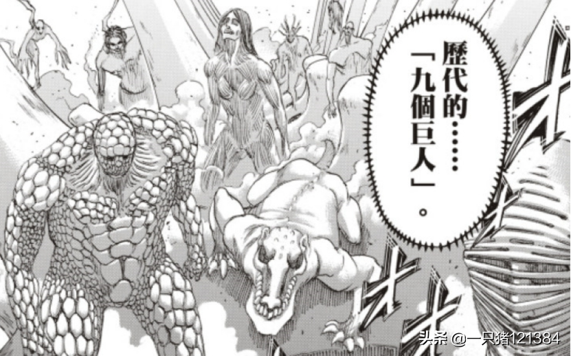 那么为何说兽之巨人是最弱的呢?之前也没有给出具体的理由,而在最近更新的第136话中,我们看到了历代九大巨人悉数登场,其中自然也有历代的兽之巨人。于是我们终于明白了,为何说兽之巨人历代以来都是最弱的巨人。