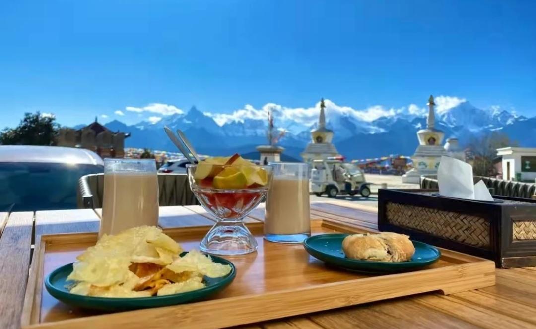 观看梅里雪山有两个位置,一个是飞来寺,再一个就是雾浓顶。雾浓顶是观看梅里雪山全景的最佳位置,这里拍摄梅里雪山可以将远方的飞来寺村和下面的河谷作为前景,可看到雾浓顶村的炊烟和澜沧江的峡谷云雾,视野里的梅里雪山不显突兀,更加大气磅礴。
